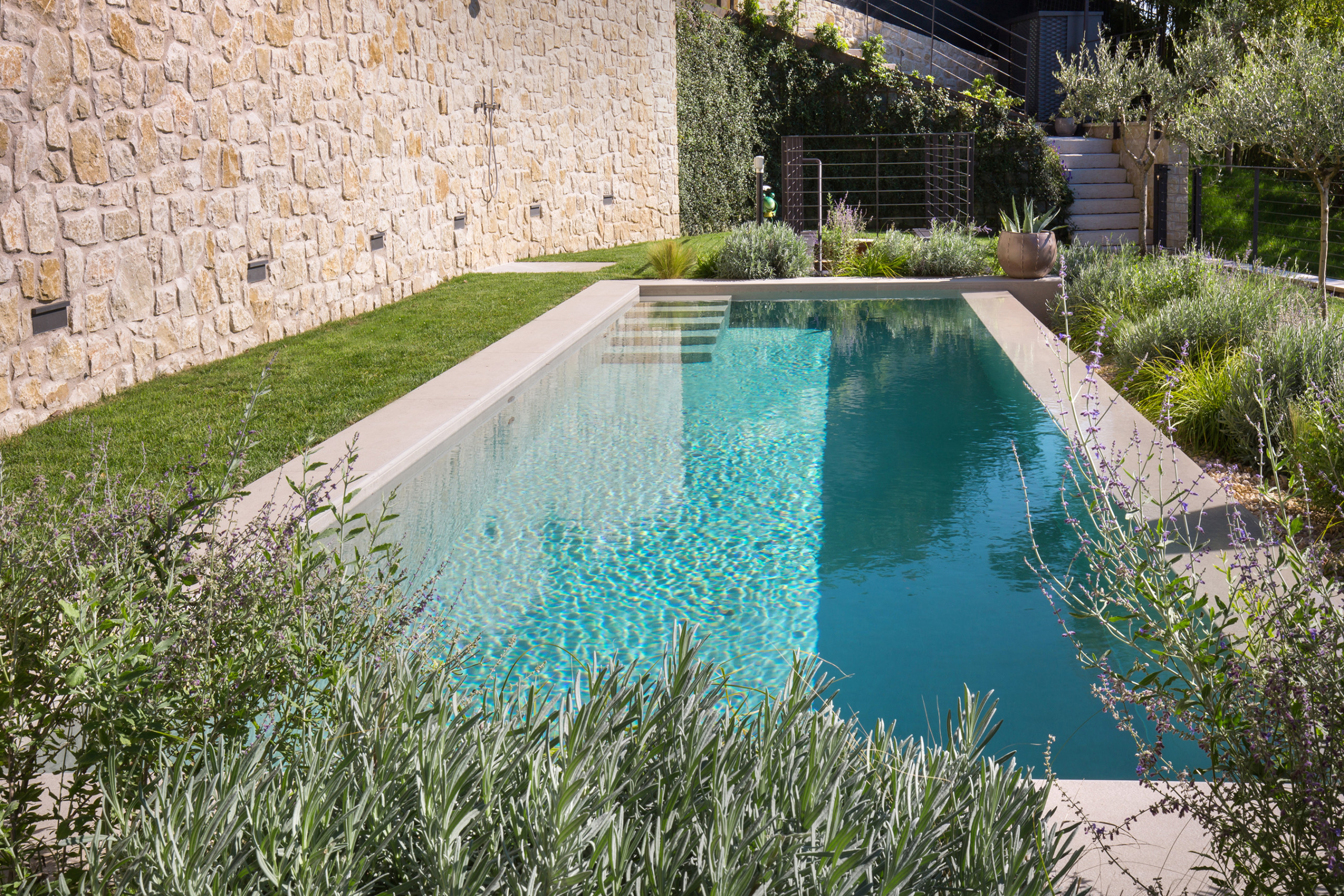 Gemeinschaftspool mit Sonnenliegen für die Gäste, perfekt um die Sonne in Ruhe in einem grünen und privaten Umfeld zu genießen.