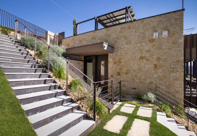 Die Rote Wohnung befindet sich auf den Hügeln mit Blick auf den Gardasee in dem Dorf Marciaga, nur 3 Kilometer von den Stränden und der Stadt Garda entfernt, und in kurzer Entfernung vom berühmten Golfclub Cà Degli Ulivi. Die Wohnung ist Teil eines kleinen Mehrfamilienhauses mit drei unabhängigen Wohneinheiten mit unterschiedlichen Merkmalen, die alle für den Tourismus genutzt werden.