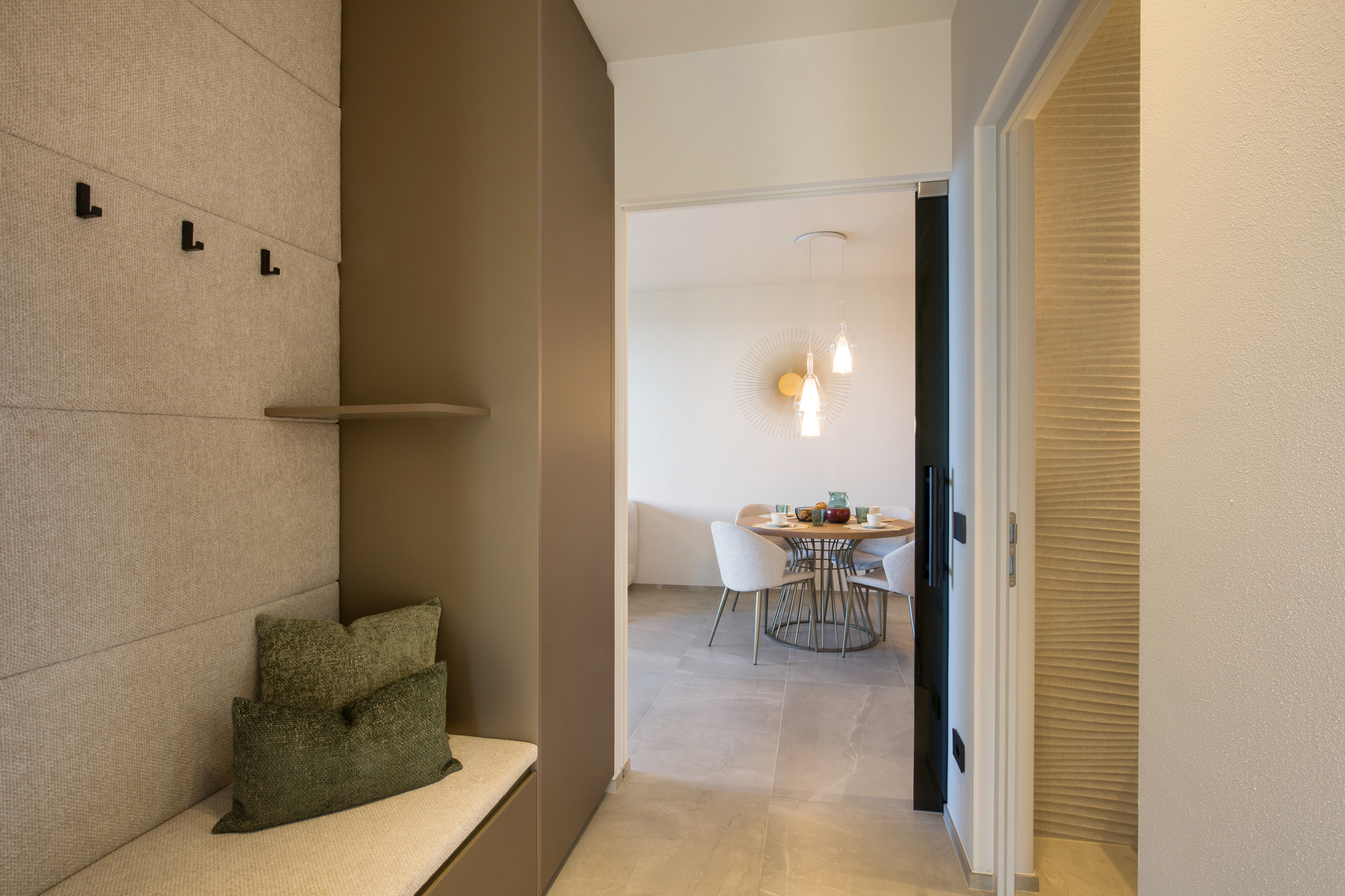 Der Eingang führt zu einem Flur, der zur Wohnzone und zur Küche führt.