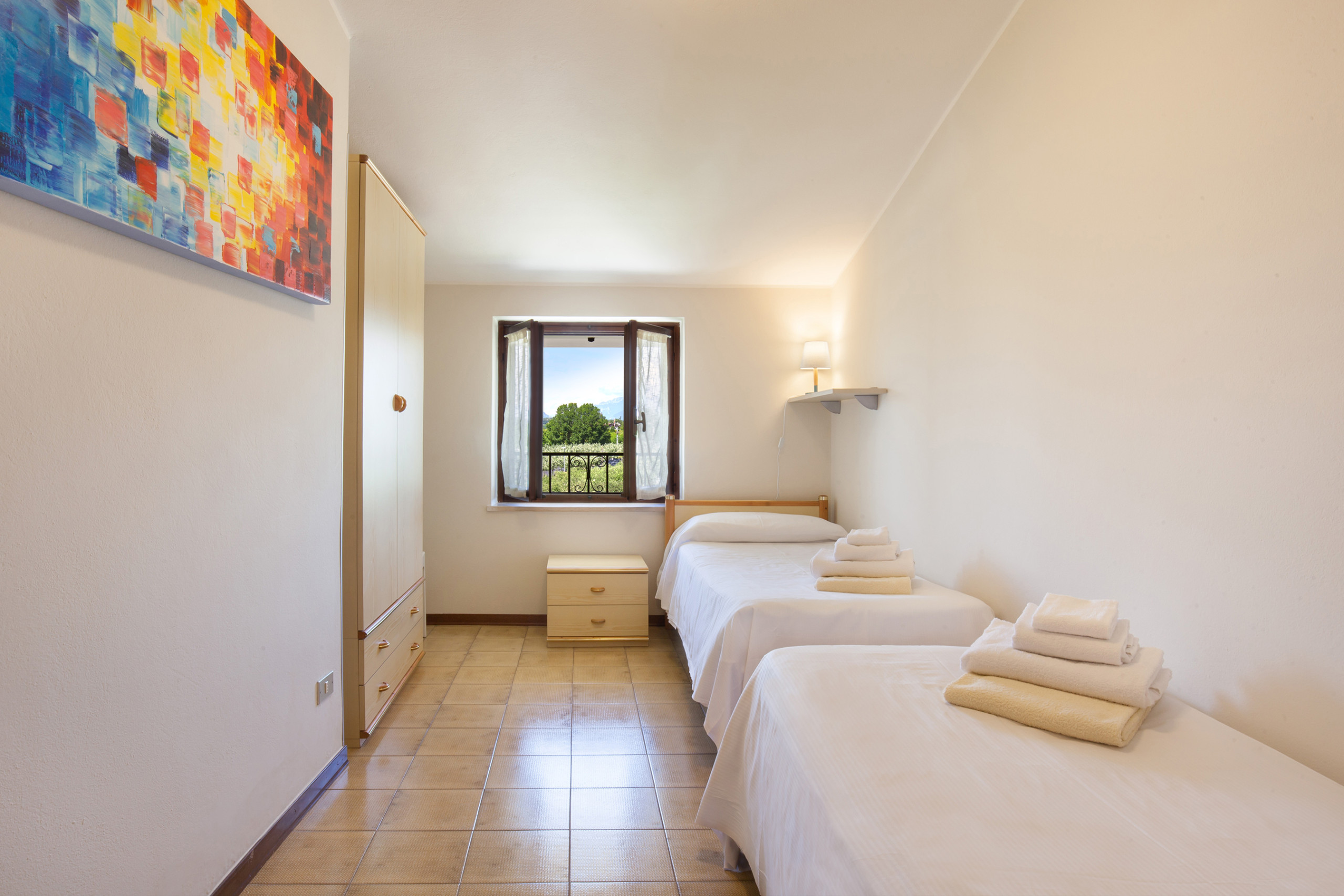 Der Schlafbereich besteht aus einem Doppelschlafzimmer mit großem Kleiderschrank und Balkon sowie einem zweiten Schlafzimmer mit zwei Einzelbetten.