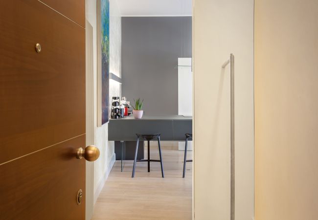 Beim Betreten werden Sie von einem Wohnzimmer mit einem Schlafsofa für zwei Personen empfangen, ideal zum Entspannen und Fernsehen. Das Sofa lässt sich leicht in ein bequemes Bett umwandeln. Vom Wohnzimmer aus haben Sie Zugang zur italienischen Terrasse, die mit mediterranen Pflanzen geschmückt ist und eine grüne Oase im Herzen der Stadt darstellt. Auf der Terrasse befindet sich ein Tisch für vier Personen, ideal für Mittagessen, Abendessen oder einen erfrischenden Aperitif.