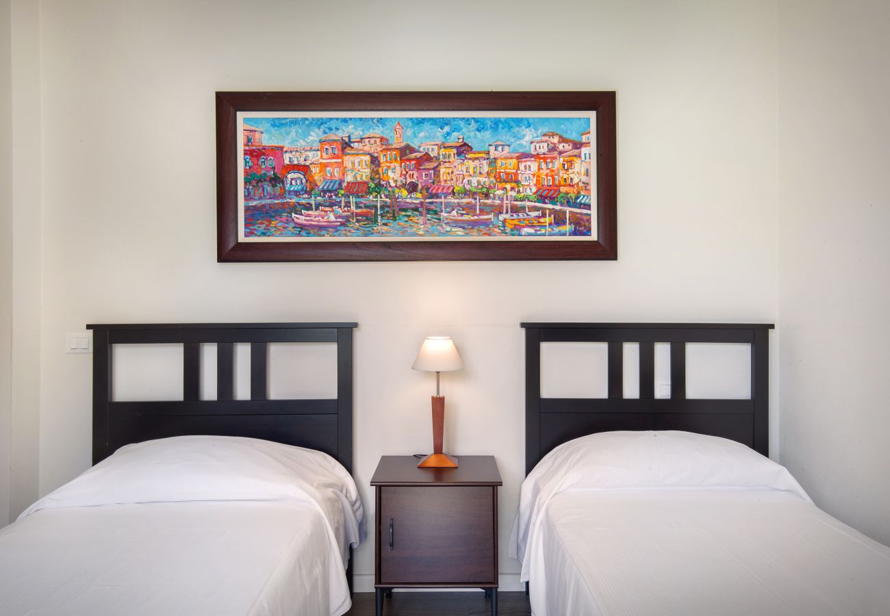 Es gibt drei Zimmer mit Doppelbetten und ein Zimmer mit zwei getrennten Einzelbetten, ideal um bis zu 8 Personen unterzubringen.