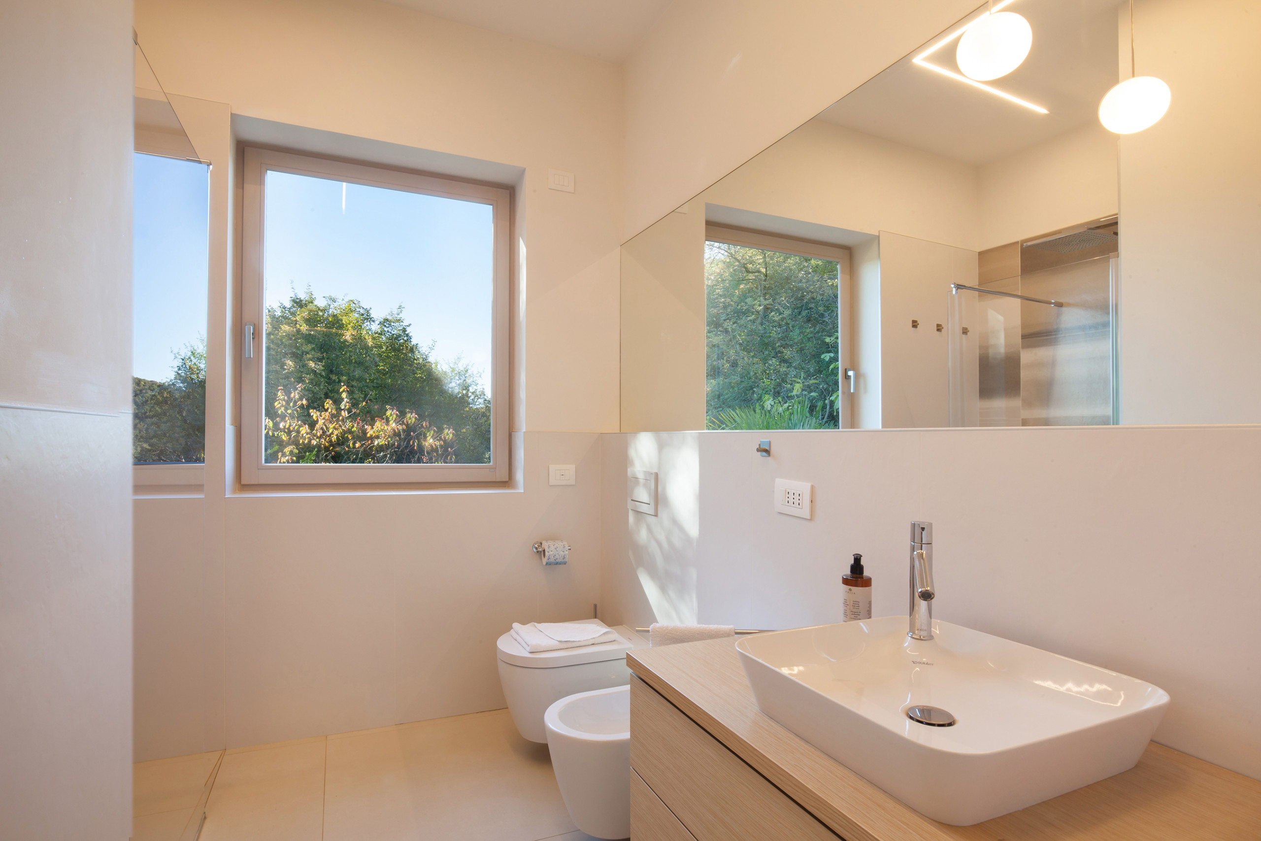 Die Villa erstreckt sich über zwei Etagen. Im ersten Stock befindet sich ein geräumiges Wohnzimmer mit Esszimmertisch, das auf einen Balkon mit Seeblick und Blick auf das Dorf Torri del Benaco und seine mittelalterliche Burg führt.