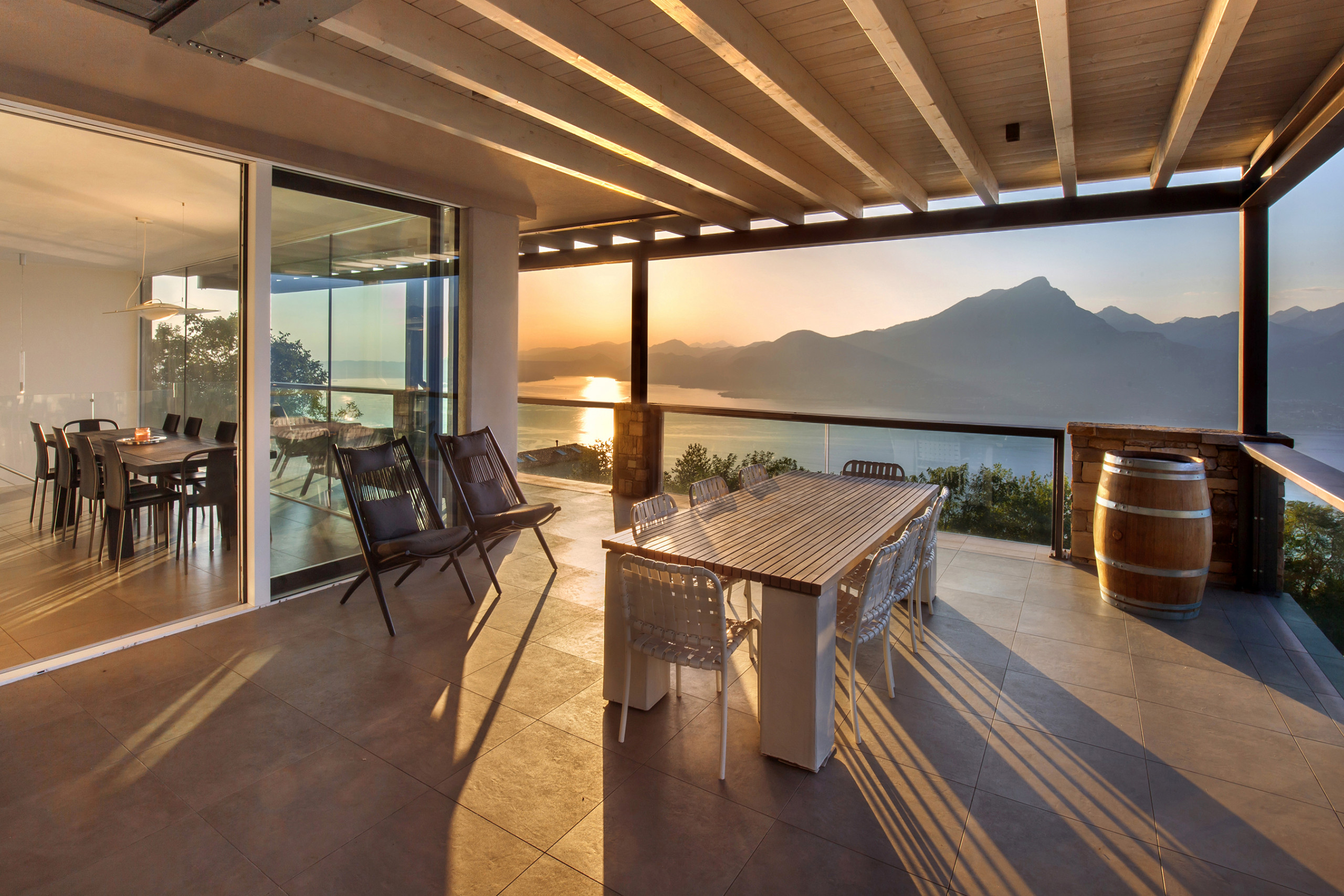 Im Außenbereich verfügen die Gäste über eine überdachte Terrasse mit Loungebereich, ideal für einen Aperitif bei Sonnenuntergang mit Seeblick.