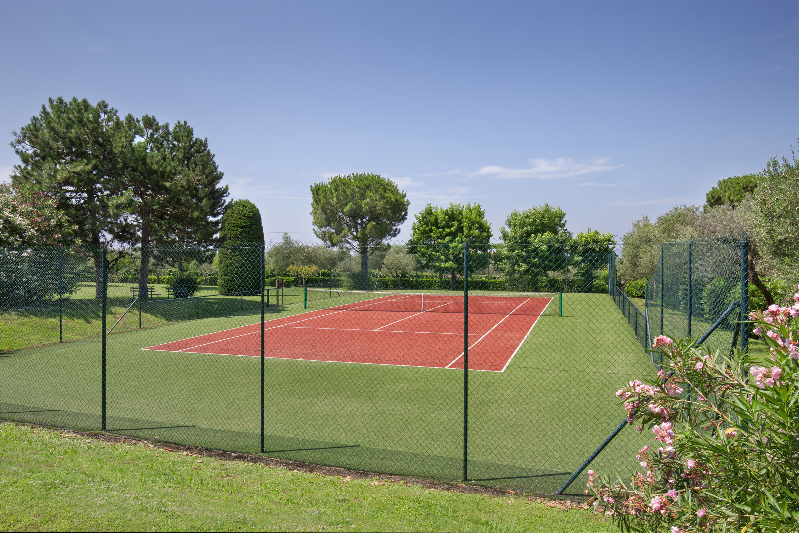 L'appartamento dispone di un'area verde privata adiacente alla terrazza coperta, perfetta per prendere il sole con lettini a disposizione. La Residenza ha un ampio giardino che circonda la grande piscina e un campo da tennis comune, a disposizione degli ospiti.