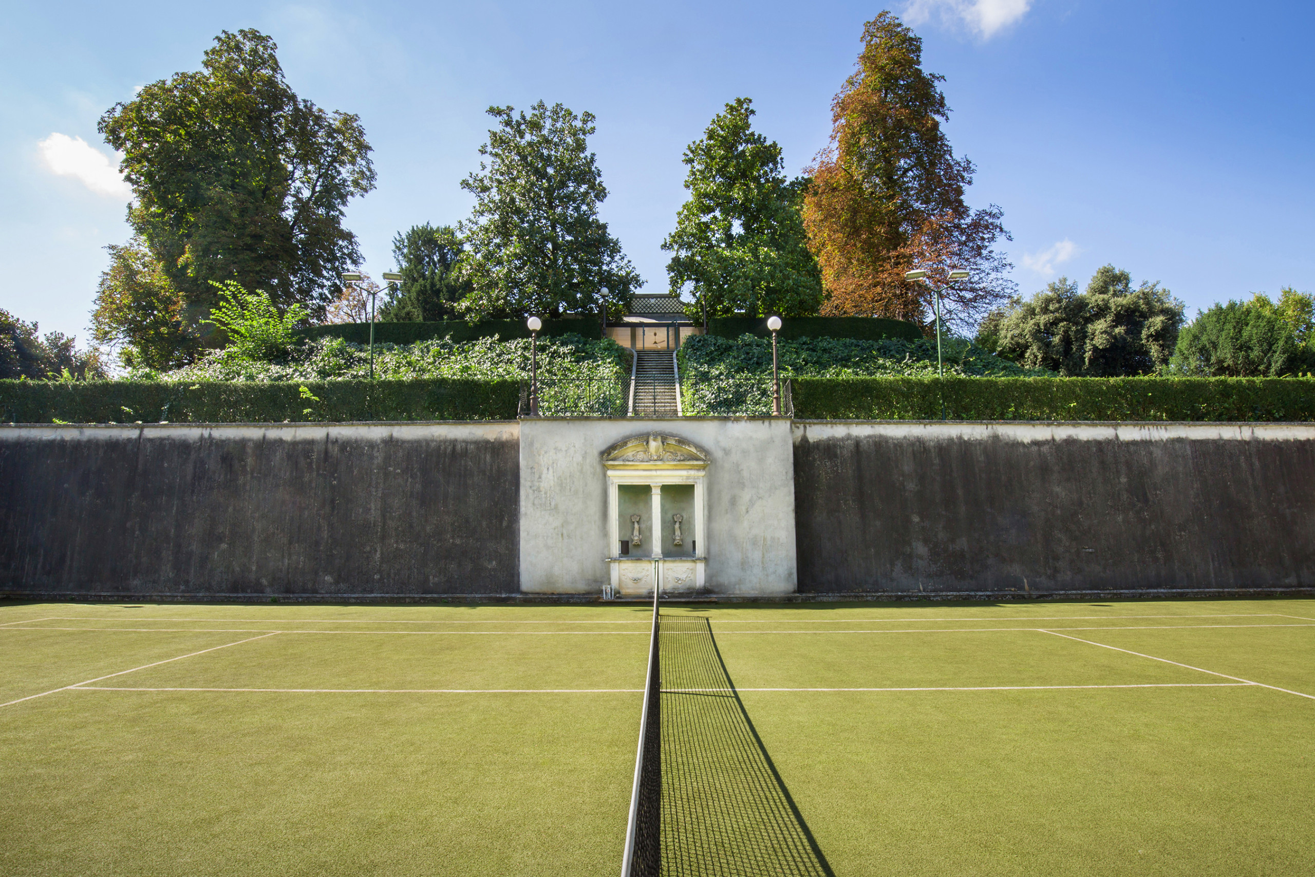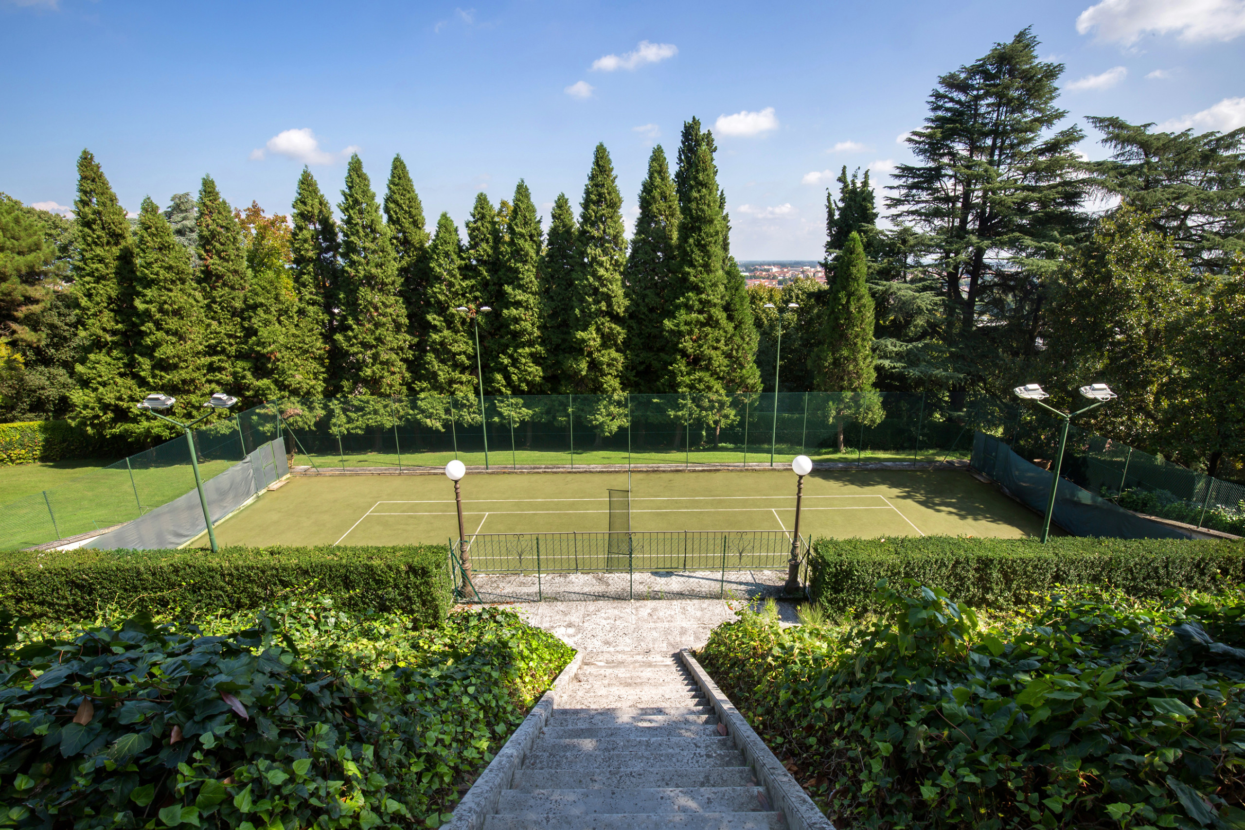 Per gli amanti dello sport, un campo da tennis privato immerso nel verde è a disposizione degli ospiti.