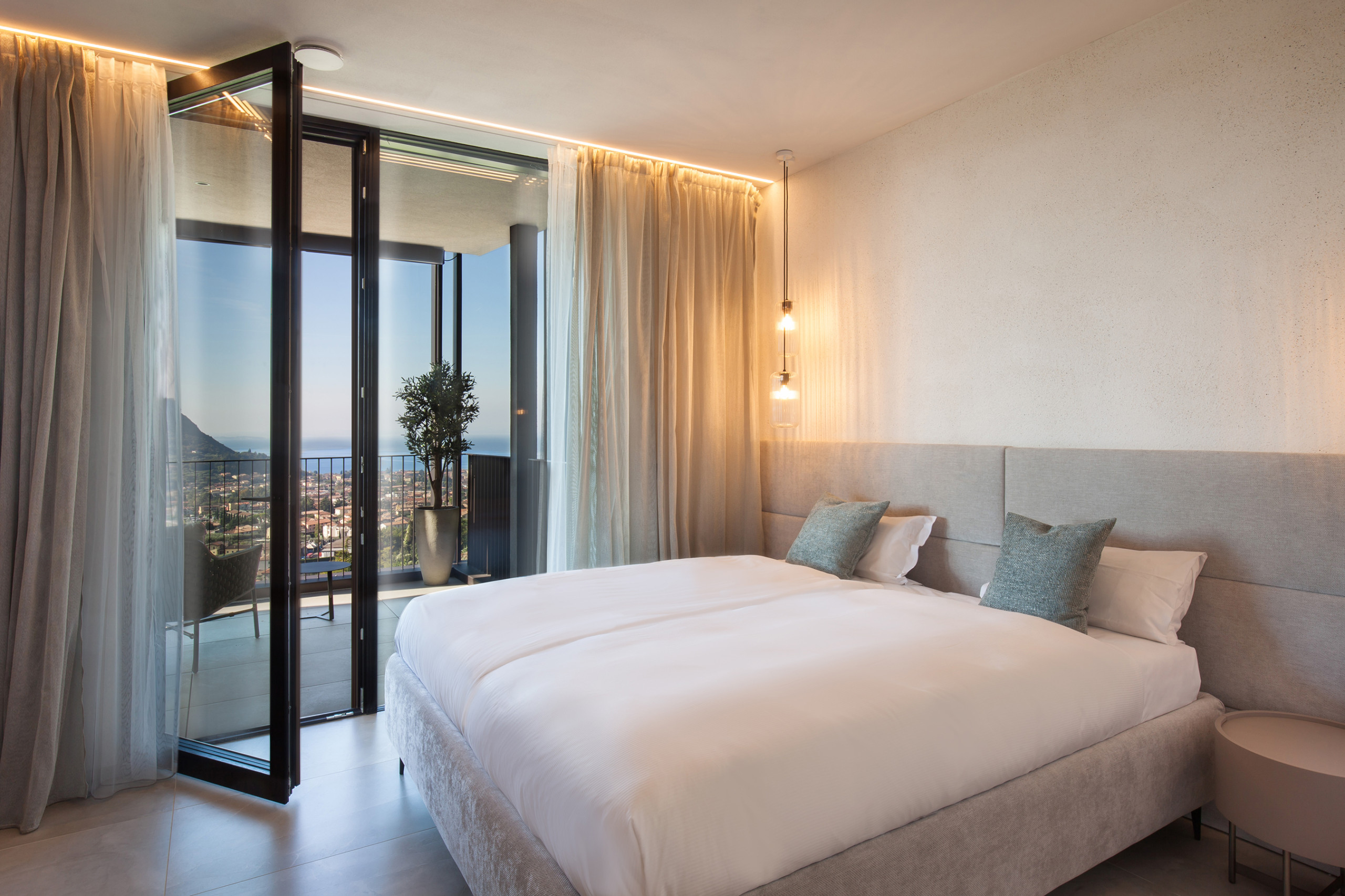 The second bedroom is also equipped with a double bed and a wardrobe and offers direct access to the terrace with a view of the lake.