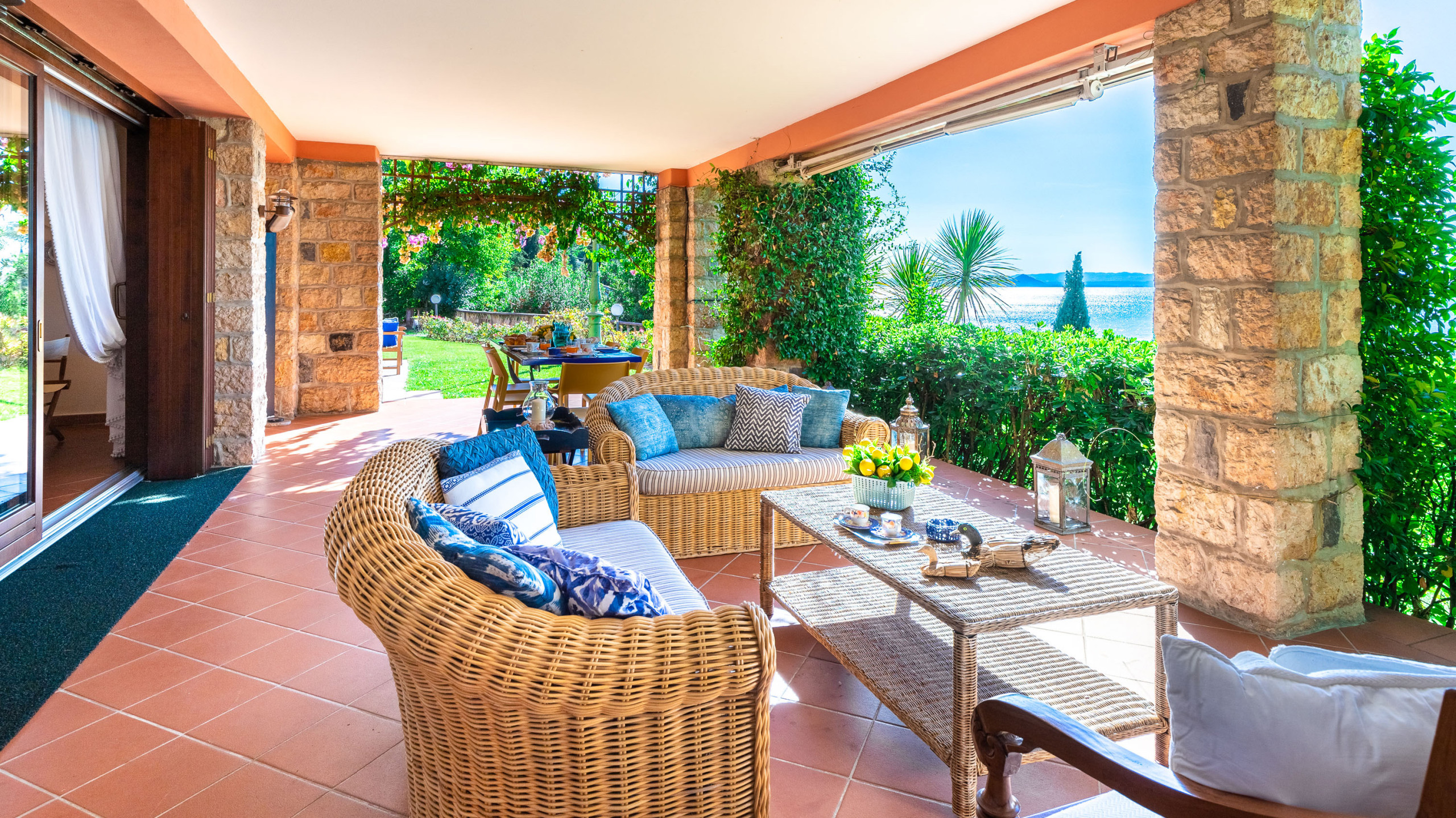 The property has its own garden of 110 sq m, and then there is a secular park in communion to be traversed with steps or paths immersed in greenery. From the common entrance gate, a stone uphill avenue begins, bordered by centuries-old cypresses and palm trees that reaches the top of the hill and the villa with direct access to the apartment. The very well-maintained garden is completely flat and delimited from the rest of the park with a beautiful perimeter of fragrant flowers. A portico, placed between the garden and the entrance to the living room, is tastefully furnished with a zone with sofas, bench and small table and on the other side by a beautiful ceramic table with respective chairs. It is the ideal place for lunches and dinners outdoors, enjoying a magnificent view of the lake. The rest of the common park that ends up to the upper hill with the beautiful swimming pool. It is alternated by stone staircases and paved paths and enriched by a vast assortment of aromatic plants and very colourful flowers.