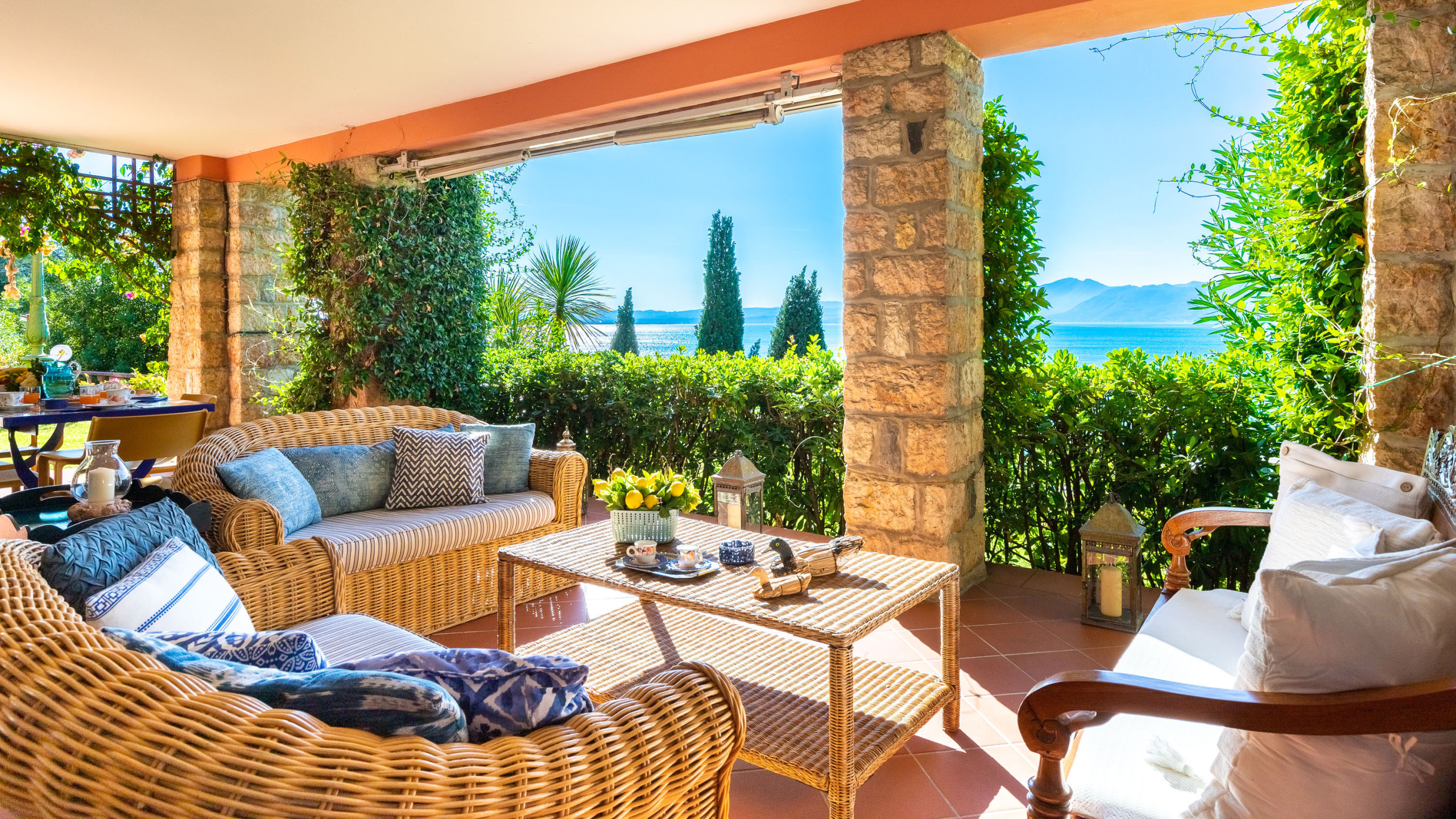 The Villa Corazza apartment is set in an elegant and romantic context, typical of the Villas on Lake Garda. The villa is close to the public beach and offers a marvellous view of the lake, immersed in a century-old park of 10,000 sq m with olive trees, palm trees, lemon trees, plants and flowers from the lake area. The property is located just 2 kilometres from the characteristic centre of Torri del Benaco, situated in a particularly tranquil hillside position and ideal for those seeking complete relaxation and to be surrounded by nature. The apartment is part of Villa Corazza, a property from the early 1900s, skilfully restored with materials created by local artisans, such as terracotta flooring, fireplace, external stone portico with breathtaking view of Lake Garda. Its geographical location makes it particularly suitable for visiting the most beautiful places on the lake, as well as the cities of Verona, Mantua, Trento, Venice and the Monte Baldo mountain for beautiful excursions for trekking and bike enthusiasts. Moreover, its proximity to Parks such as Gardaland, Movieland, Sigurtà Park, Natura Viva Park, offers pure entertainment for both adults and families.