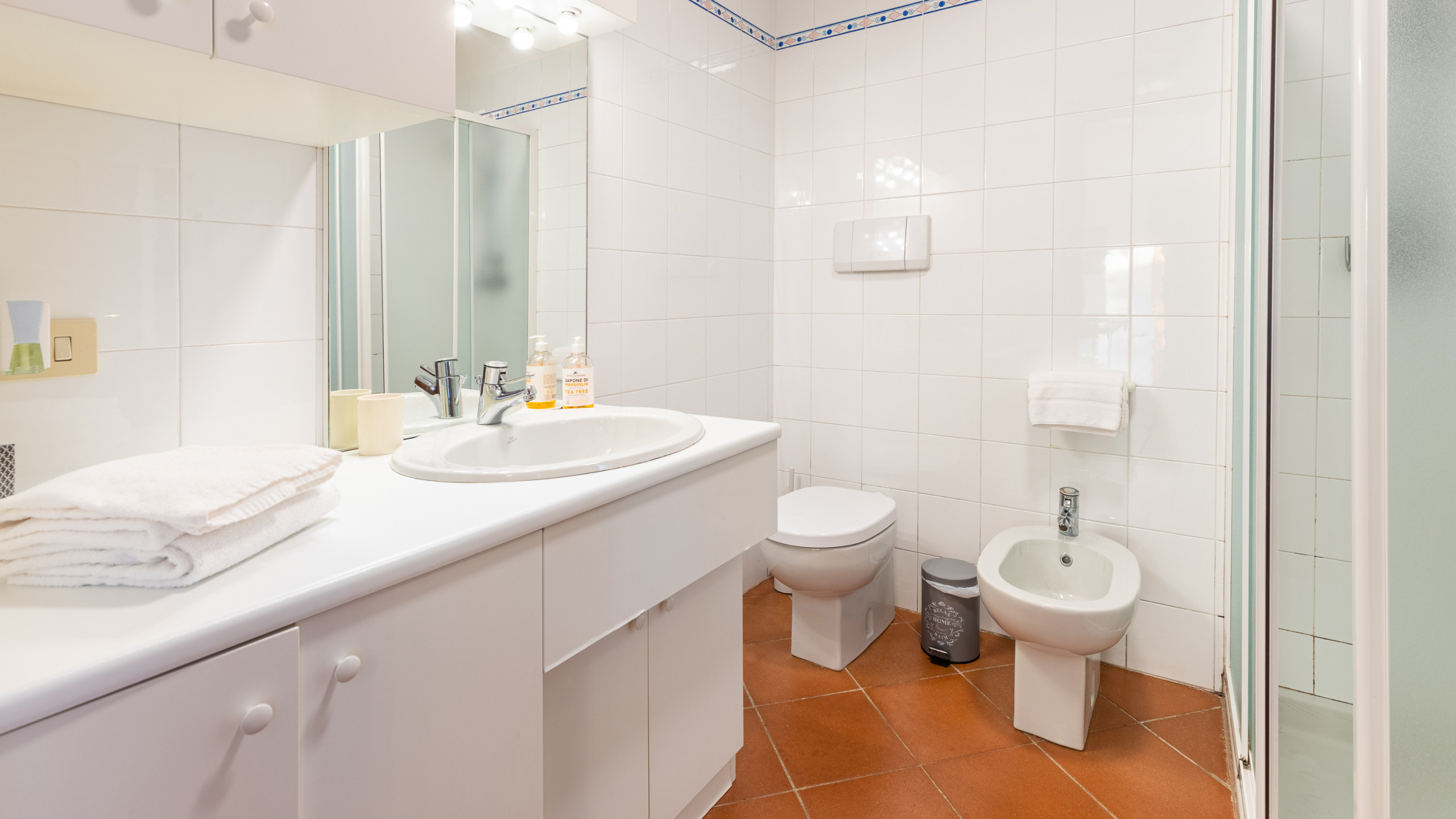 The apartment, equipped with air conditioning, offers on the second floor a double bedroom, a room with a bunk bed and a complete bathroom with a shower. On the third floor, another double bedroom and a complete bathroom with a shower.