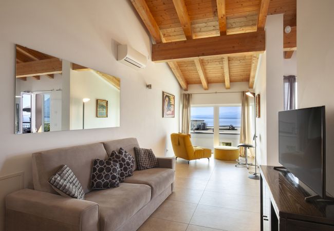 Upon entering the apartment you find yourself in the living room which overlooks the balcony with a table so you can enjoy the beautiful view of Lake Garda.