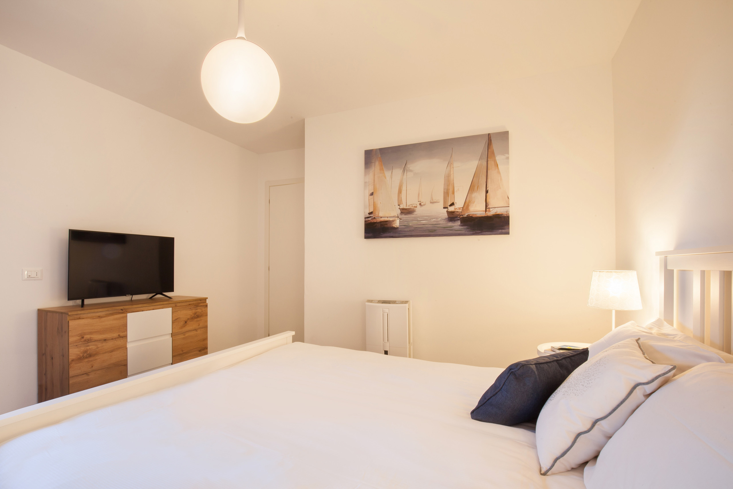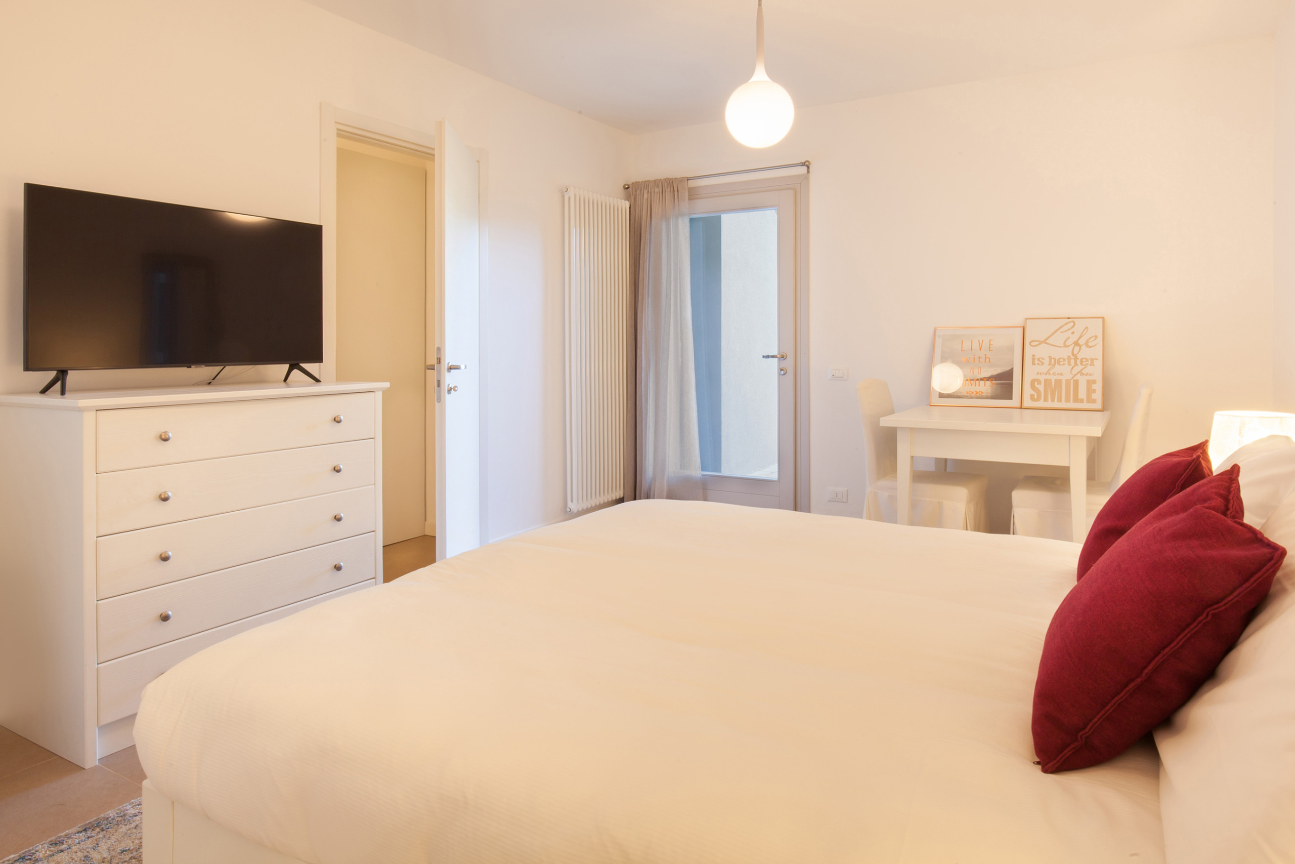 On the same level as the living and kitchen area is located the Patronal Suite. Through the door, you can access a little private living room and to the principal bedroom, provided with a queen-size bed, a big closet and air conditioning.