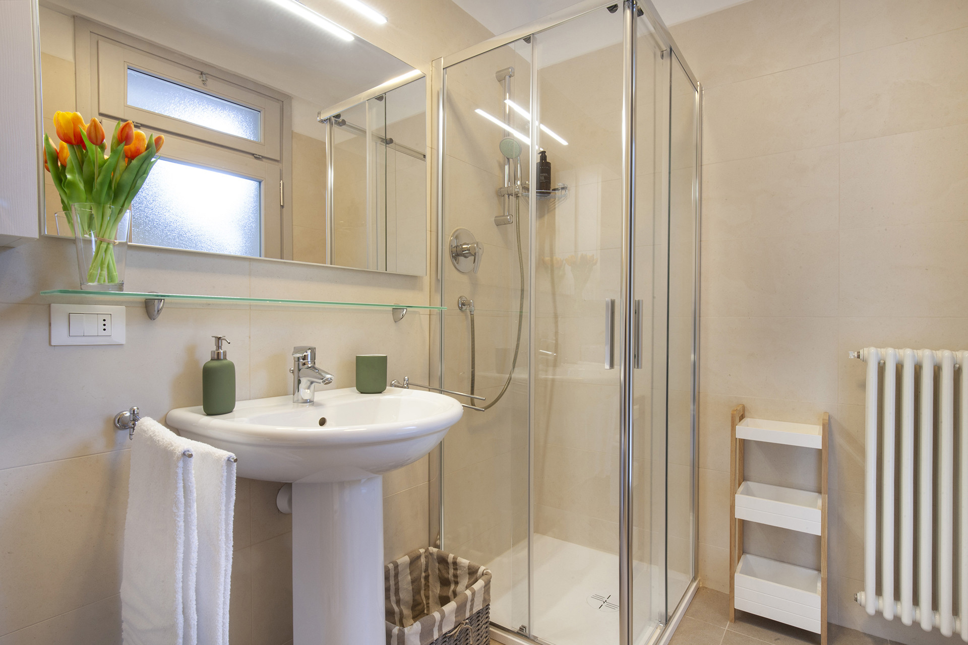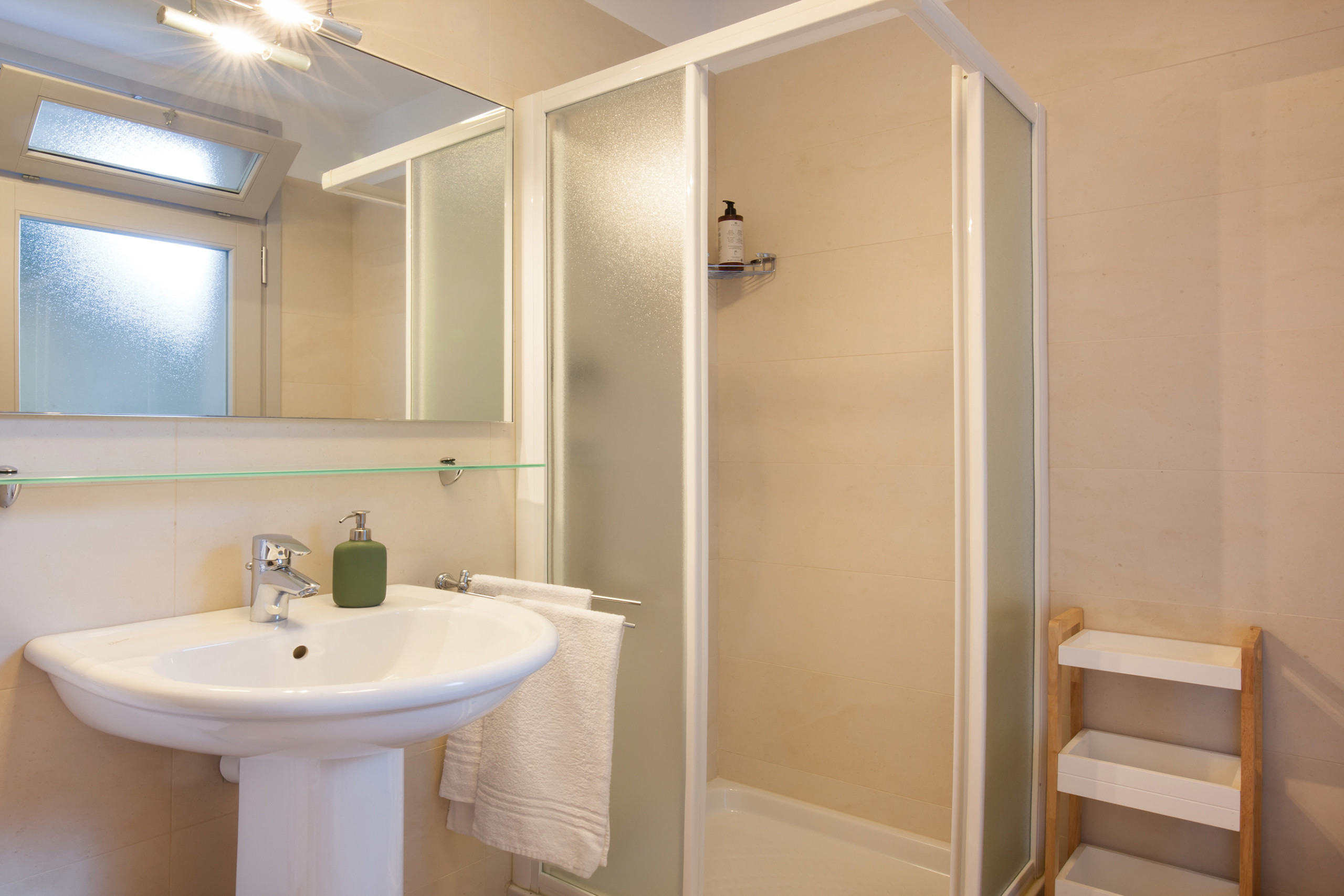 Continuing along the corridor, you will find the main bathroom, equipped with a bath with shower.
