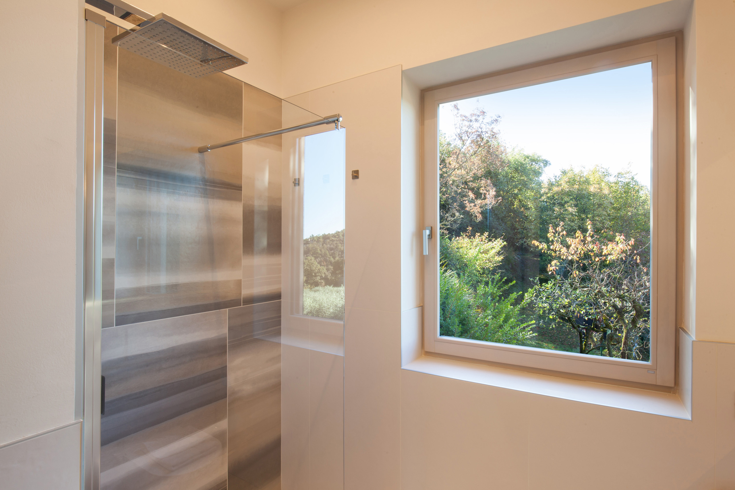 The third double bedroom, communicating with the second, has direct access to the terrace and has a private bathroom with shower accessible by exiting through the door-window.